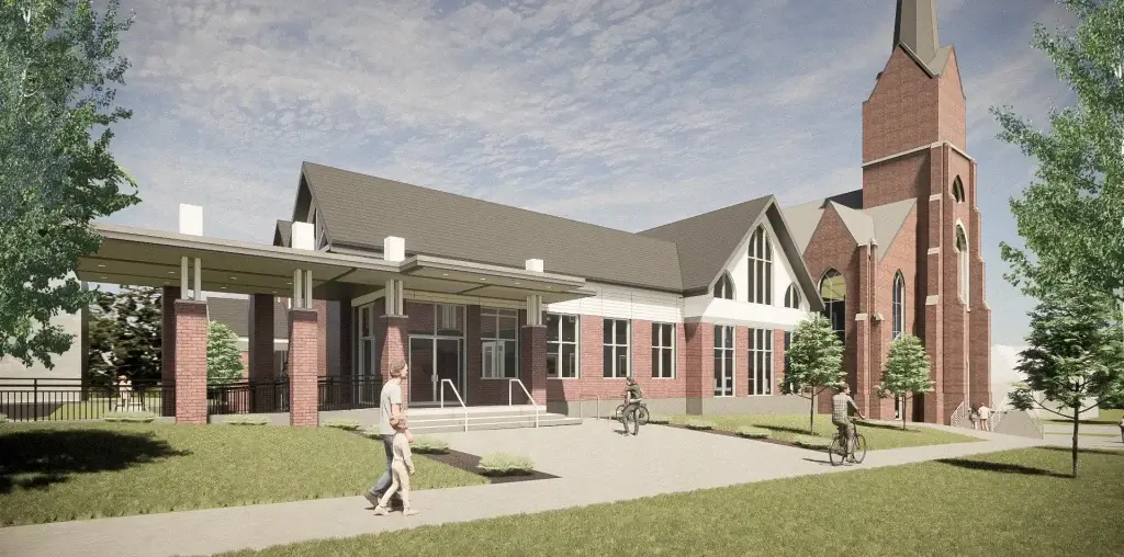 Below you will find the drawings of the proposed FLC building renovation, provided to us by Kueny Architects. The floor plans show you the internal renovations and additions to the building. The renderings of the space (the inside and outside “pictures” and video walkthrough) are meant to give a very general visual depiction of the building, focusing on feel and structure. These drawings are not yet final.