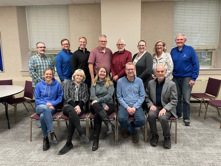 Back (L to R): Jarrad Walter (vice president), Andy Carlson, Elliott Johnson, Steve Larson, Mark Gowdy-Jaehning (president), Paige Albjerg, Donita Joens, and Rich Gaard.